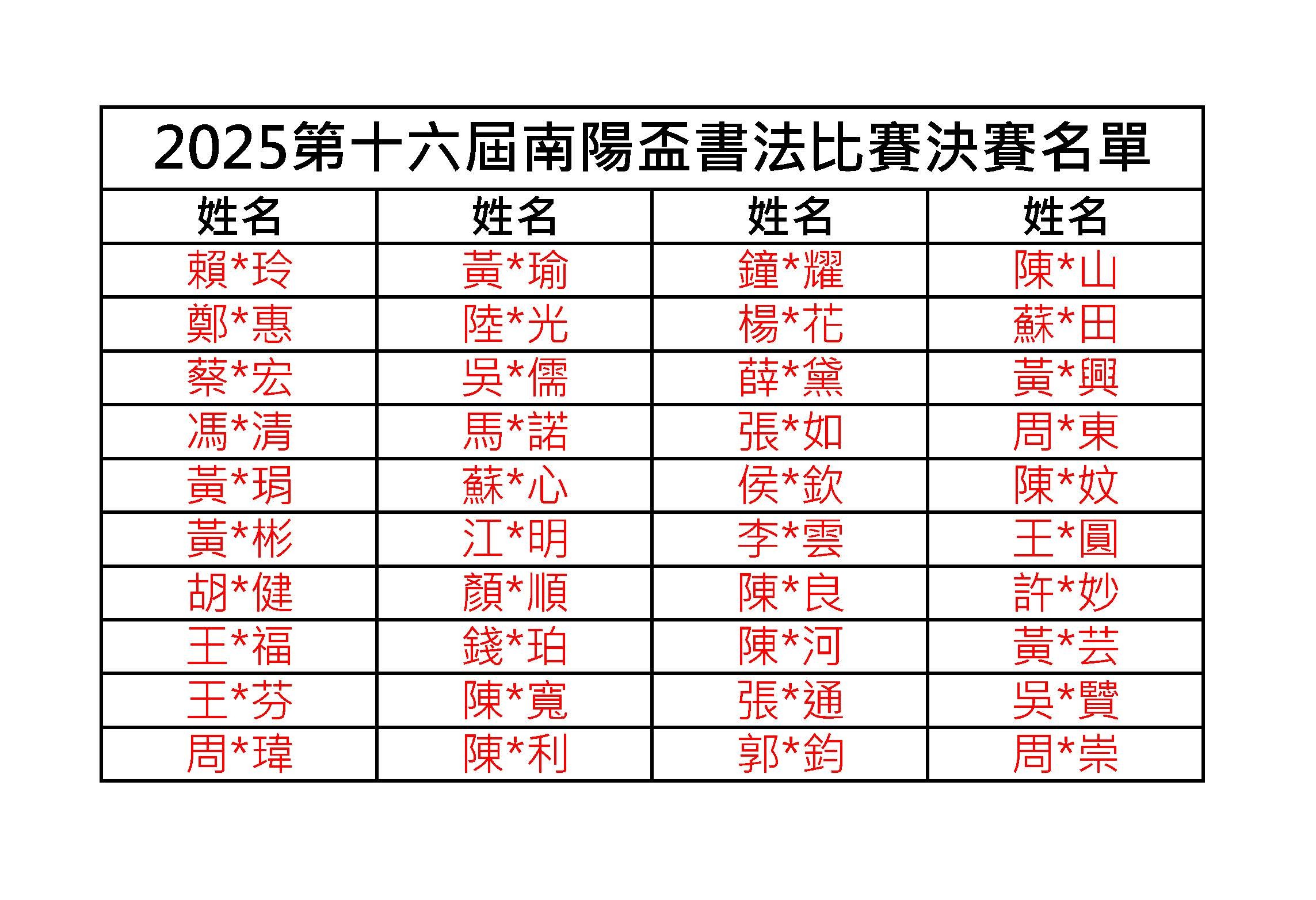 2025書法比賽-決賽名單
